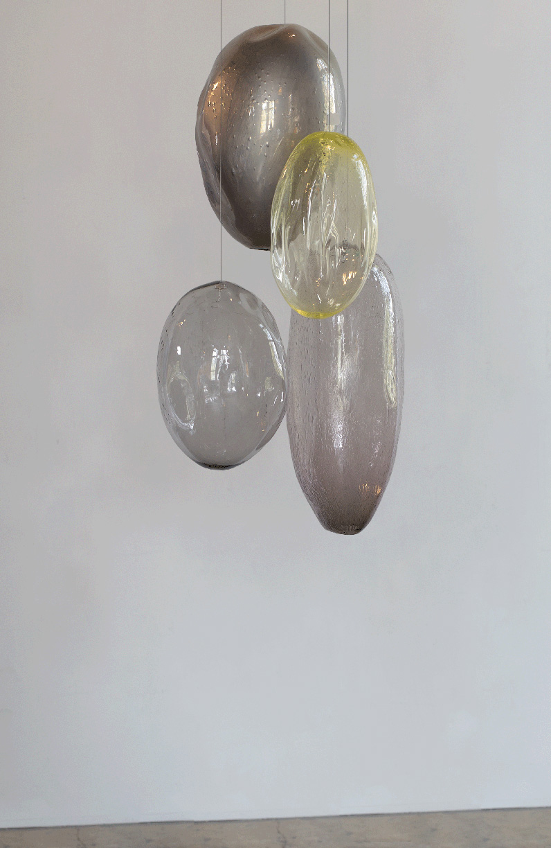 After her recent residency at the Museum of Glass, multi-media artist Ann Gardner has returned to her roots. Inspired by the large amount of time she spends in the water, she sought to create bubble like forms. They are intentionally imperfect, as is nature, and created with breath, another element essential to sustaining life. These hanging forms remind her of the purity and simplicity she finds in glass, and the effortlessness way the medium helps her to express herself.