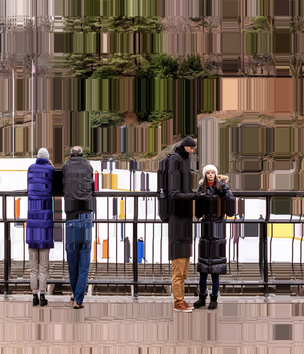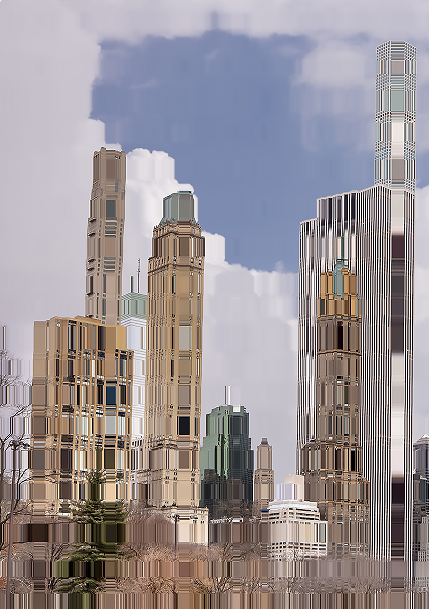 Asaf Gam Hacohen digitally manipulates photographs of vibrant, familiar scenes, flattening them to near abstraction. As you move closer into the image, architecture and figures become more apparent, giving life and energy to the compositions. Hacohen plays with the idea of memory, observation and the digital feed of our reality.