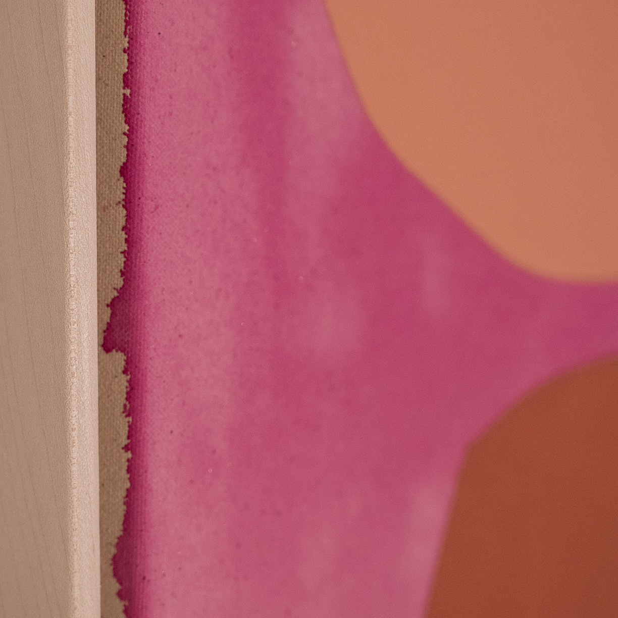 Mia Farrington's paintings envision colors as calculated, self-contained worlds that elegantly brush up against each other as calm, constant totems. The Portland-based artist experiments with the relationships between adjacent and contrasting hues through organic, solid shapes that create language through vivid juxtaposition. Artworks titled after their central color poise a distillation of intangible feeling— cerulean forms over a beige backdrop elicit mornings in a quiet forest, deep blues invoke the opalescent flow of a trickling creek. Often inspired by the unique shades of nature, Farrington magnifies complex systems to their naked essence. Her compositions pull the viewer into the ebbing relationships of pigment with a restrained urgency, defamiliarizing everyday color as a revelatory miracle.