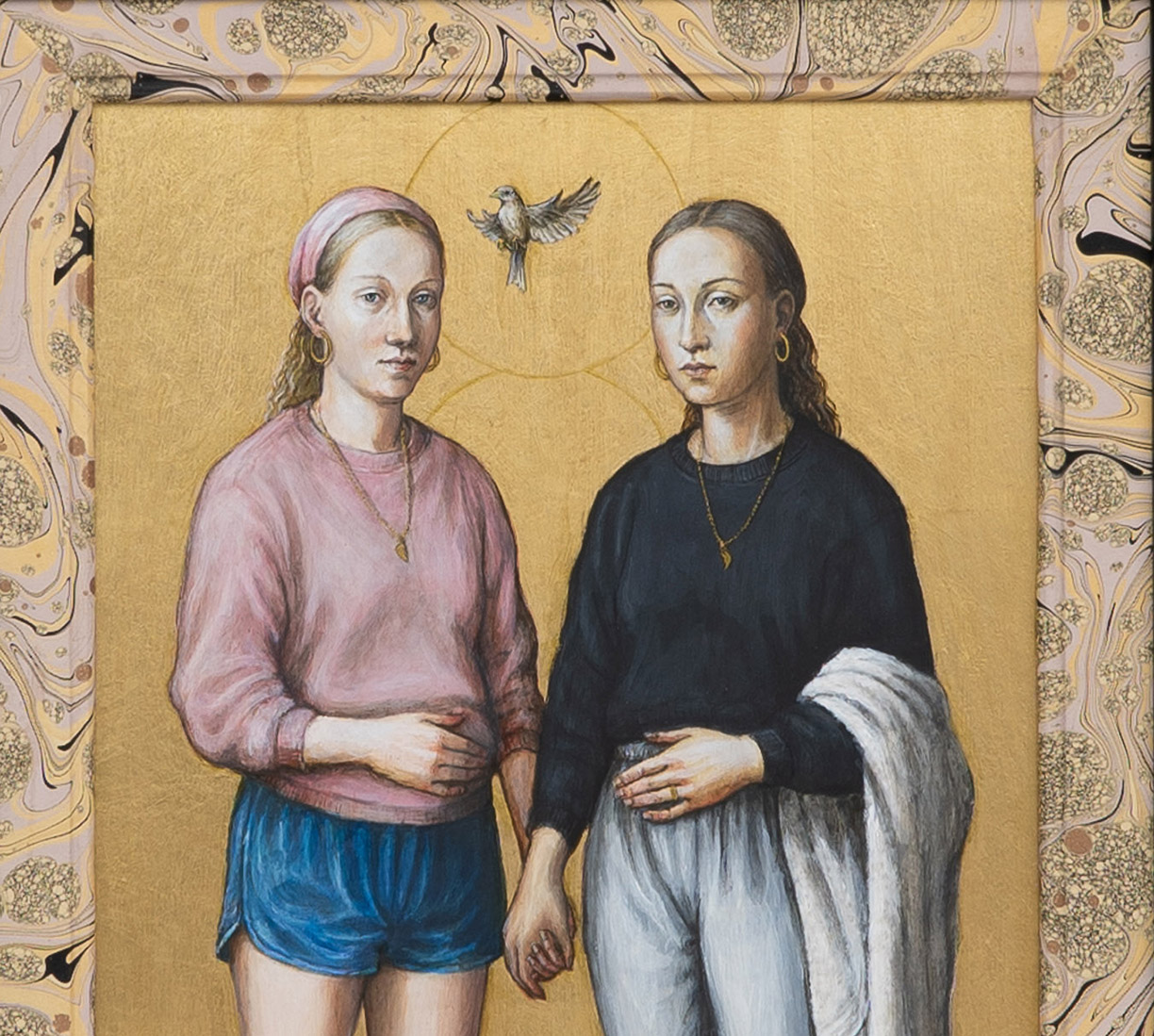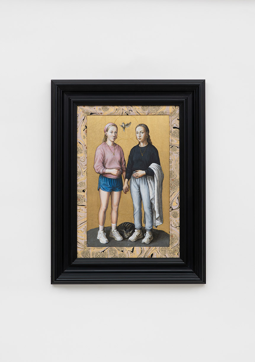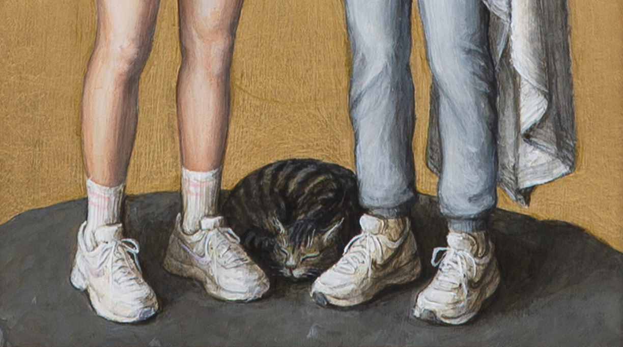 With the hand of a formally trained sculptor, Partington creates exquisite figures, clothed in an 18th Century Marie Antoinette-style dress, paired with Adidas sneakers, gold chains and carefully placed Chanel logos. Partington plays with our attention to status cues, now and then, and how we identify our tribes.