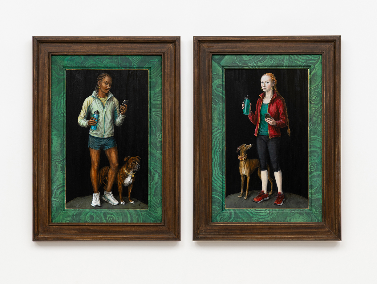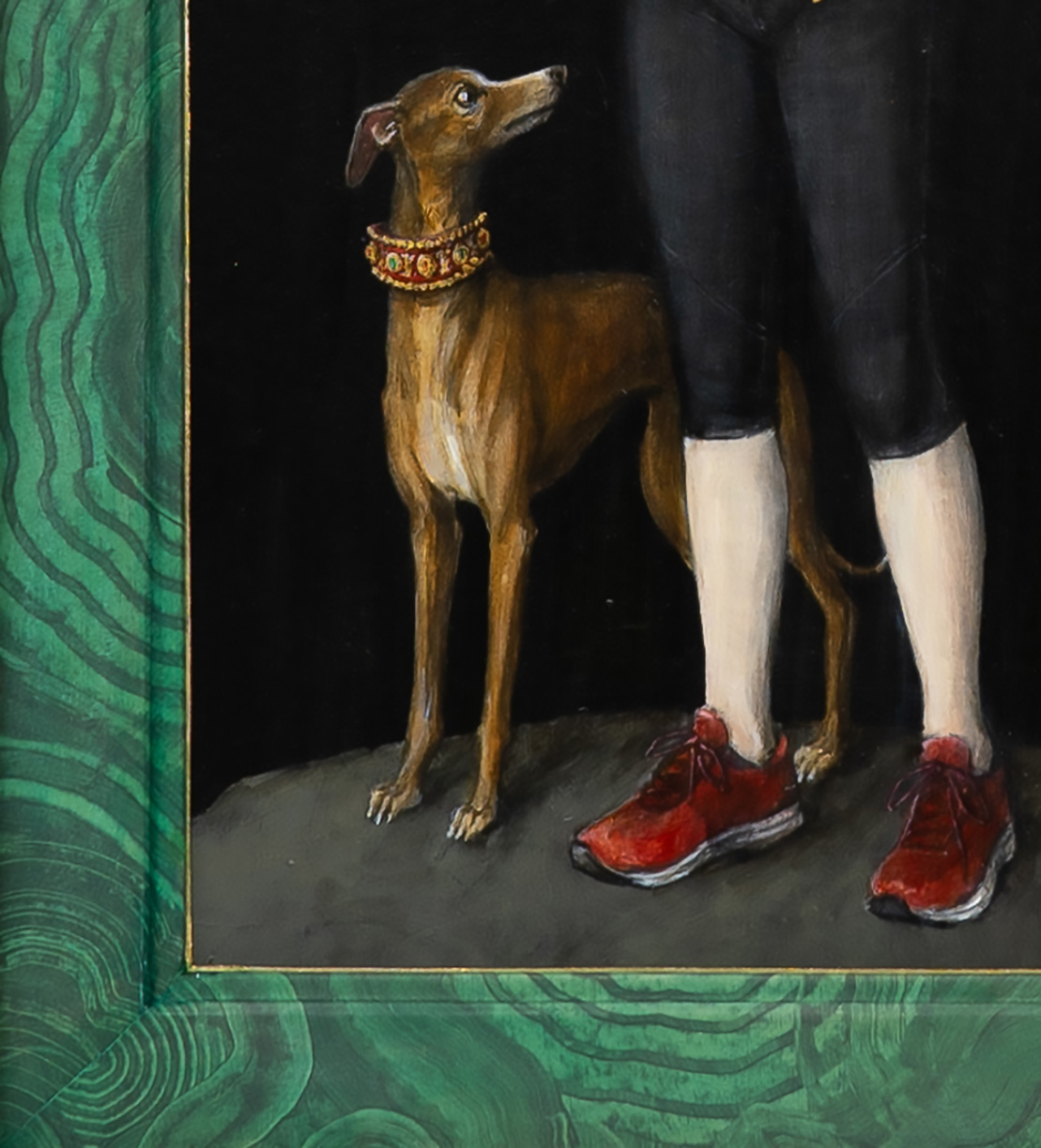With the hand of a formally trained sculptor, Partington creates exquisite figures, clothed in an 18th Century Marie Antoinette-style dress, paired with Adidas sneakers, gold chains and carefully placed Chanel logos. Partington plays with our attention to status cues, now and then, and how we identify our tribes.