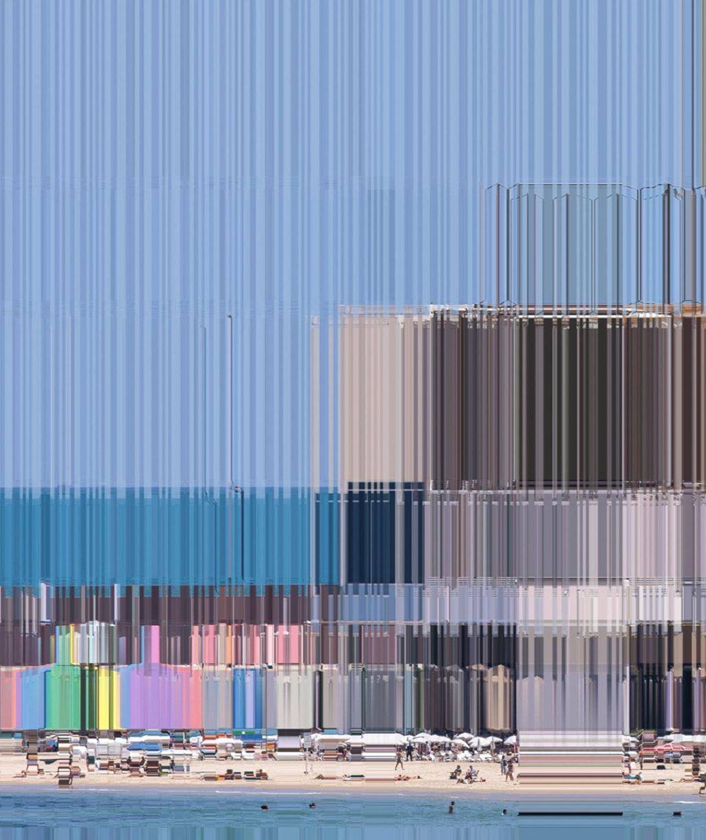Asaf Gam Hacohen digitally manipulates photographs of vibrant, familiar scenes, flattening them to near abstraction. As you move closer into the image, architecture and figures become more apparent, giving life and energy to the compositions. Hacohen plays with the idea of memory, observation and the digital feed of our reality.