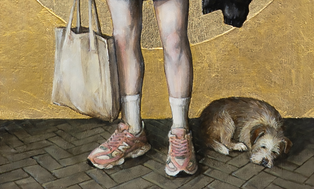 With the hand of a formally trained sculptor, Partington creates exquisite figures, clothed in an 18th Century Marie Antoinette-style dress, paired with Adidas sneakers, gold chains and carefully placed Chanel logos. Partington plays with our attention to status cues, now and then, and how we identify our tribes.