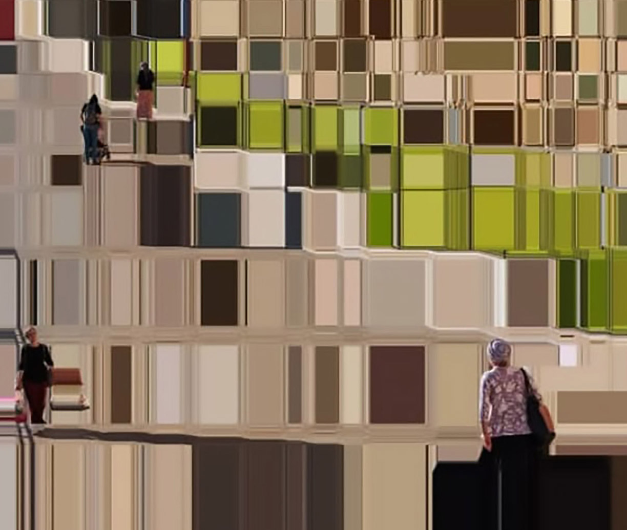 Asaf Gam Hacohen digitally manipulates photographs of vibrant, familiar scenes, flattening them to near abstraction. As you move closer into the image, architecture and figures become more apparent, giving life and energy to the compositions. Hacohen plays with the idea of memory, observation and the digital feed of our reality.