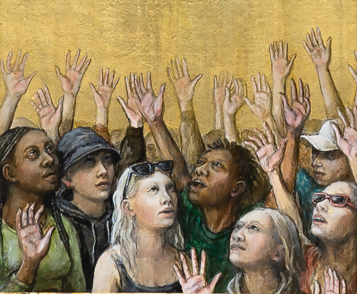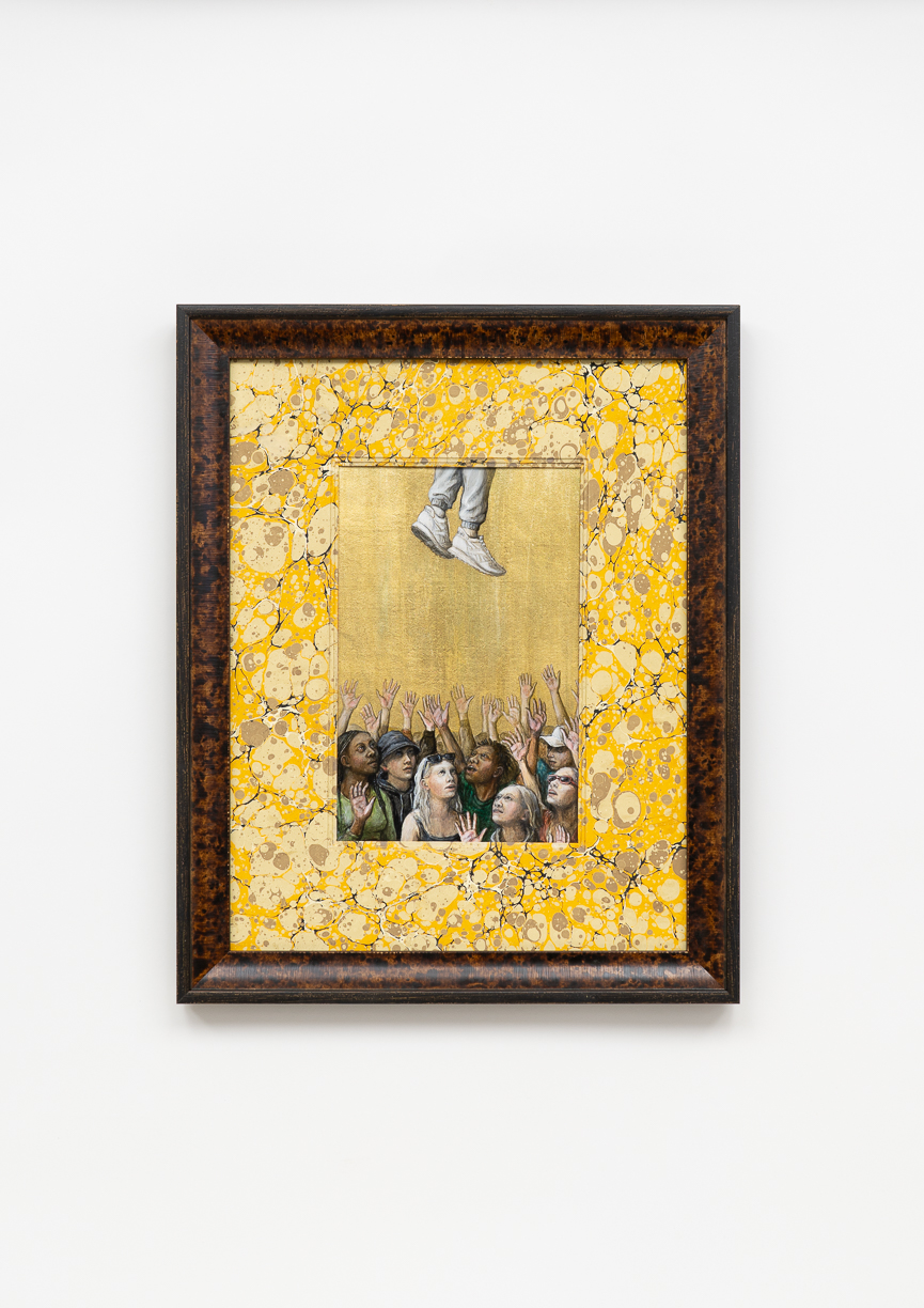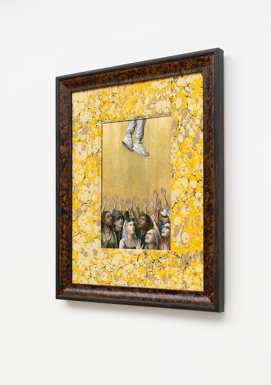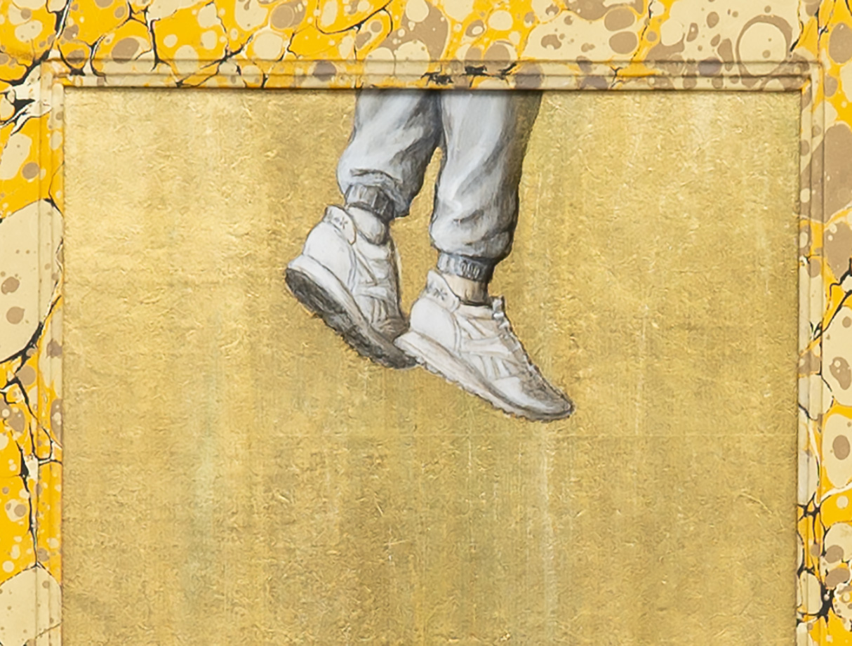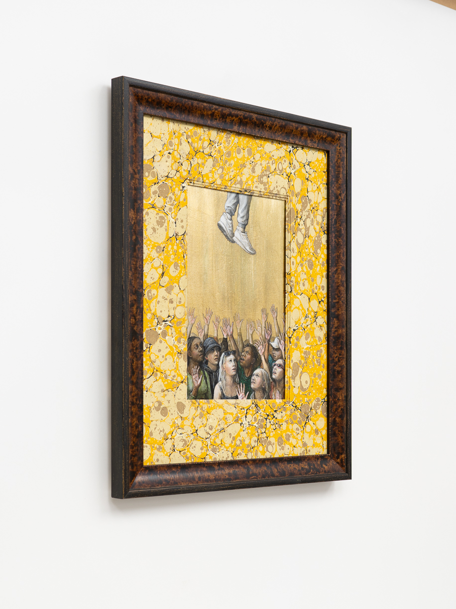 With the hand of a formally trained sculptor, Partington creates exquisite figures, clothed in an 18th Century Marie Antoinette-style dress, paired with Adidas sneakers, gold chains and carefully placed Chanel logos. Partington plays with our attention to status cues, now and then, and how we identify our tribes.