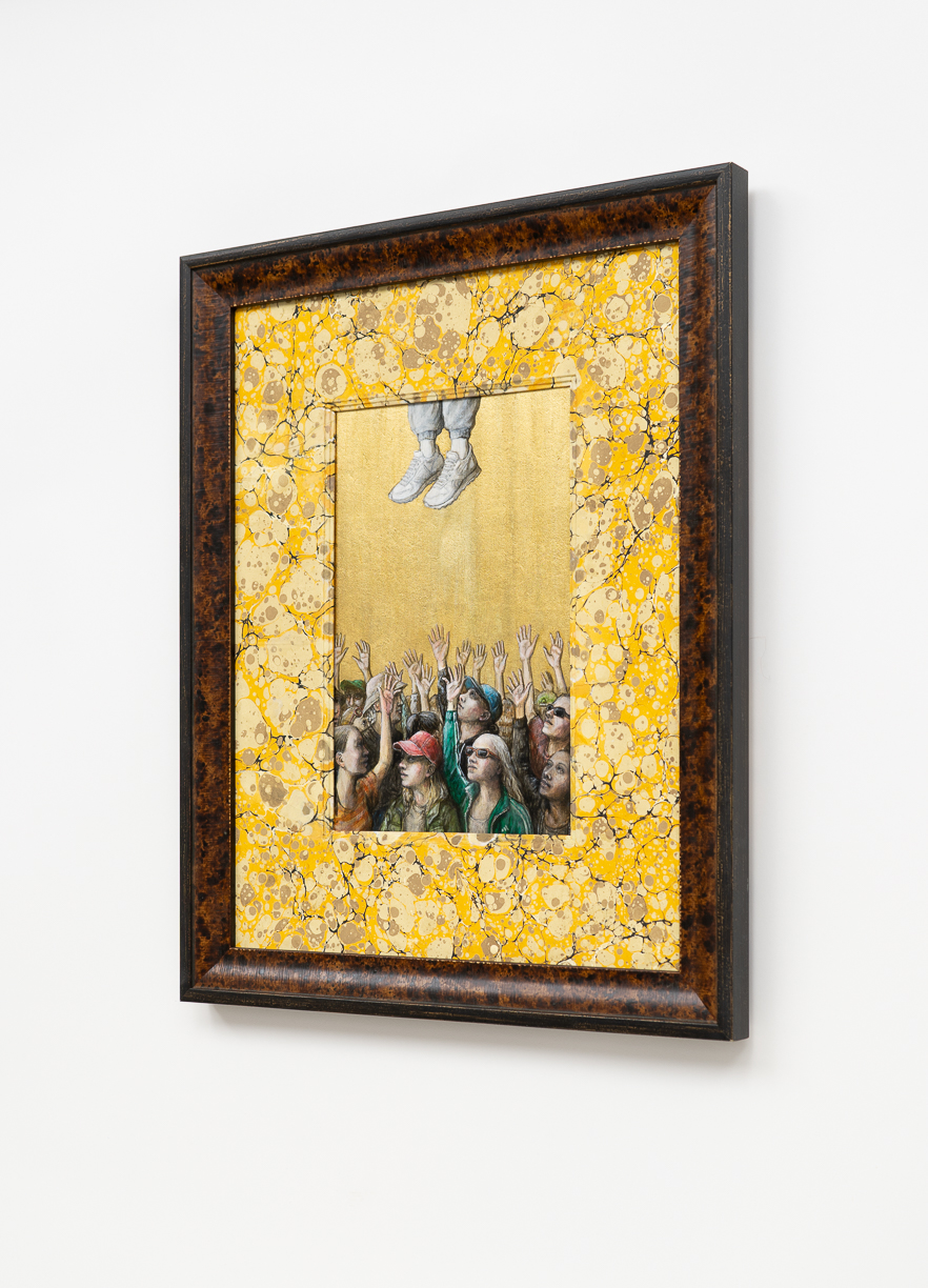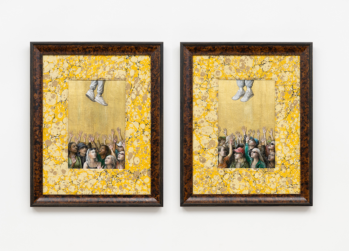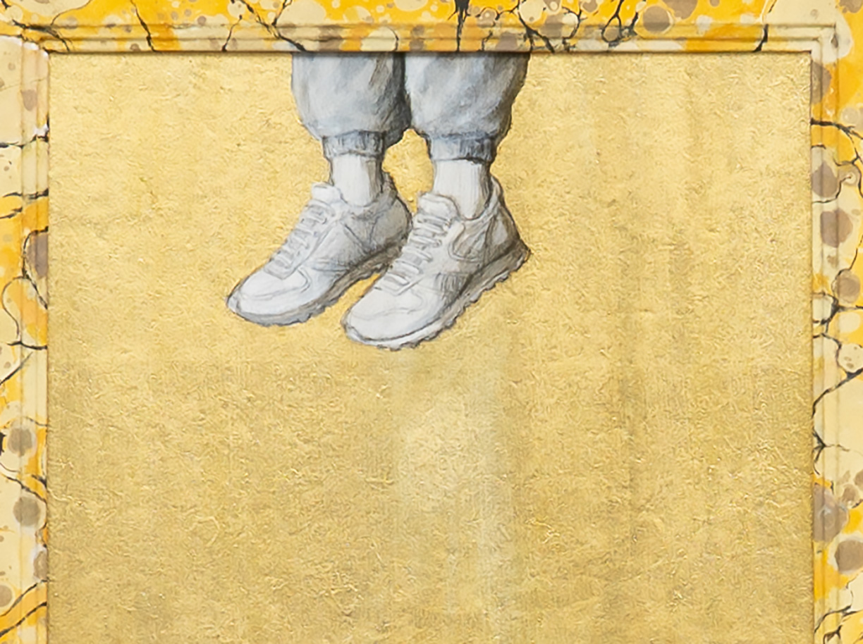 With the hand of a formally trained sculptor, Partington creates exquisite figures, clothed in an 18th Century Marie Antoinette-style dress, paired with Adidas sneakers, gold chains and carefully placed Chanel logos. Partington plays with our attention to status cues, now and then, and how we identify our tribes.