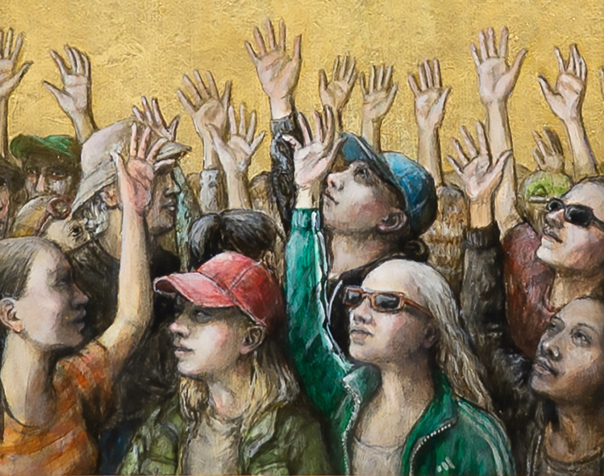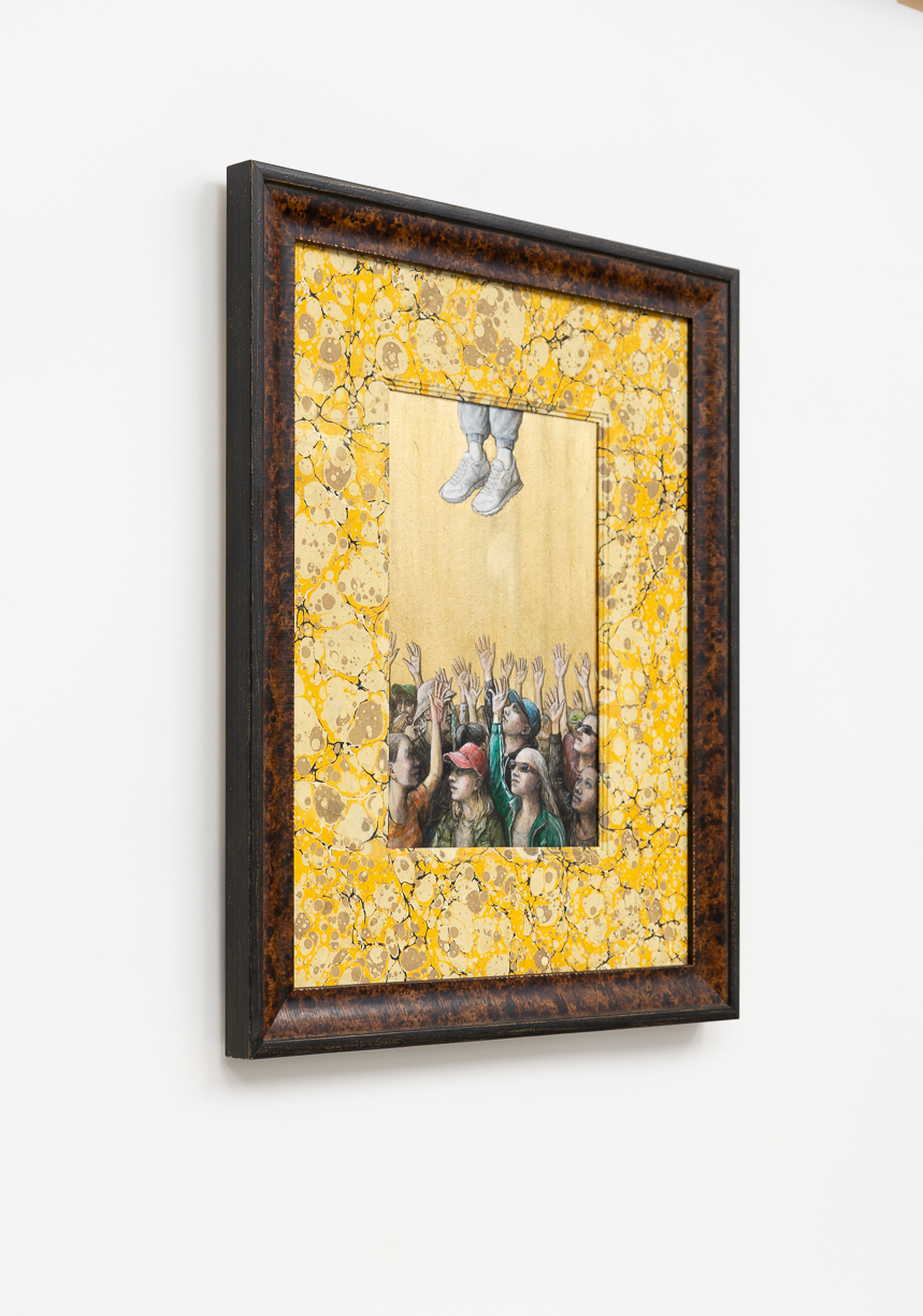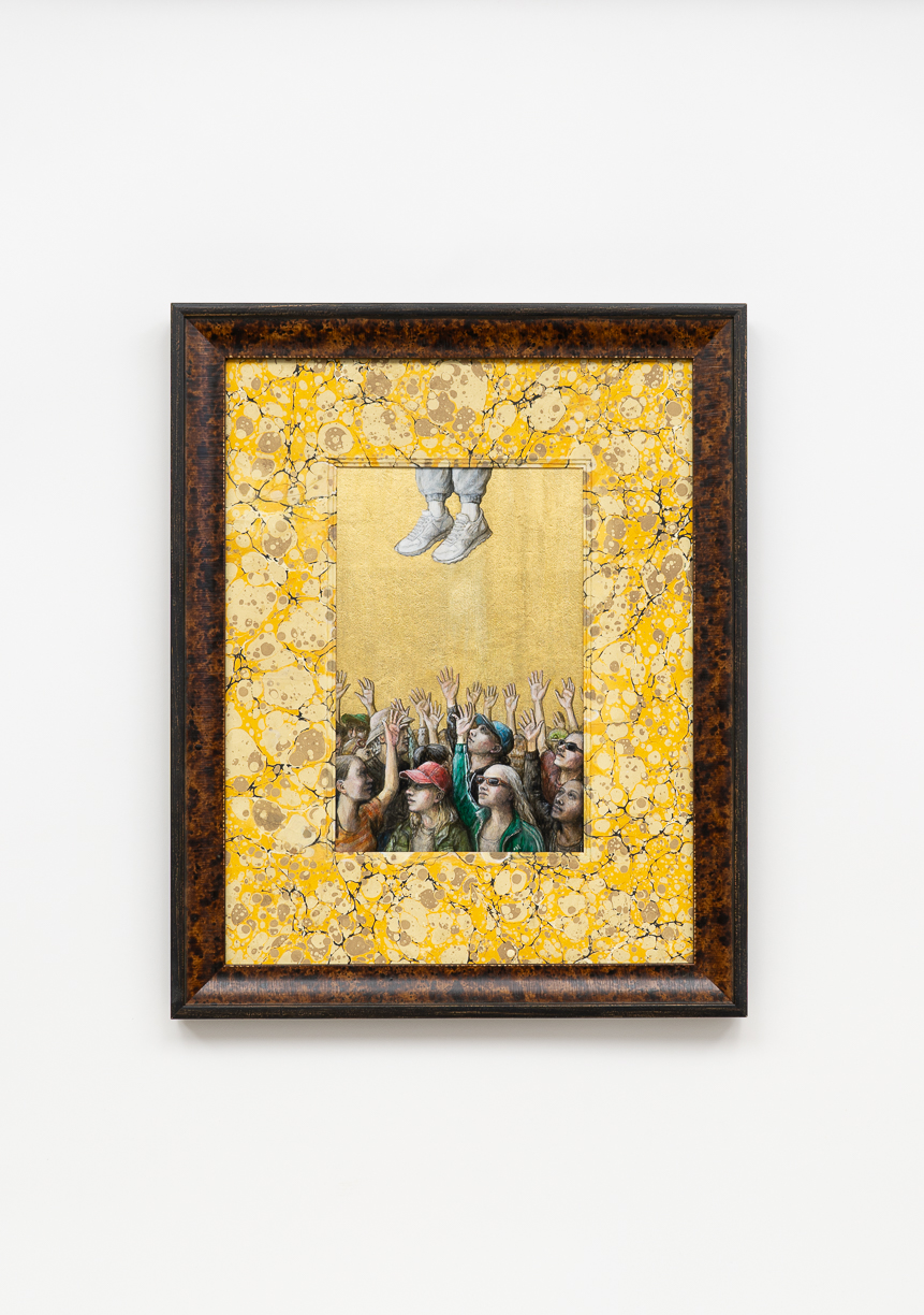 With the hand of a formally trained sculptor, Partington creates exquisite figures, clothed in an 18th Century Marie Antoinette-style dress, paired with Adidas sneakers, gold chains and carefully placed Chanel logos. Partington plays with our attention to status cues, now and then, and how we identify our tribes.