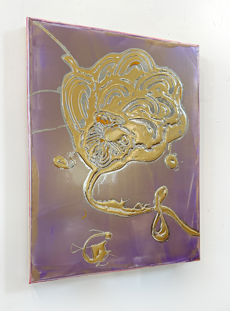 Catherine Howe insists that her paintings, which appear to reference 17th-century still life paintings, are not about representation or narrative; rather, she says they are exercises in the evocative power of painting as a material. What appear to be flora, figures, and foods dissolve into abstract flurries of brush marks and fields of commingled colors when observed closely. The painted surfaces vary widely in paint application, with some areas thinly glazed or quickly sketched, and others so thick they appear to be in relief. Howe’s palette is known to be strong and vibrant, though not without eerie contrasts; her technique includes splatters, spills, and the scraping away of paint.