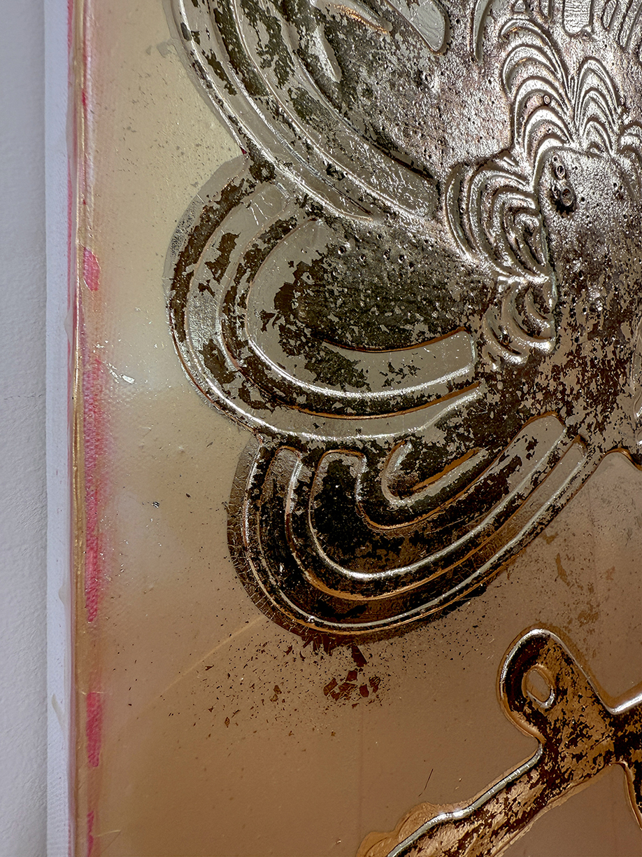 Catherine Howe insists that her paintings, which appear to reference 17th-century still life paintings, are not about representation or narrative; rather, she says they are exercises in the evocative power of painting as a material. What appear to be flora, figures, and foods dissolve into abstract flurries of brush marks and fields of commingled colors when observed closely. The painted surfaces vary widely in paint application, with some areas thinly glazed or quickly sketched, and others so thick they appear to be in relief. Howe’s palette is known to be strong and vibrant, though not without eerie contrasts; her technique includes splatters, spills, and the scraping away of paint.