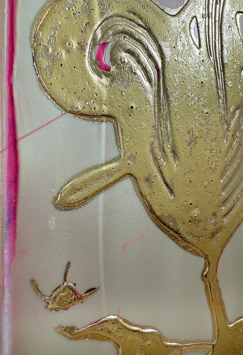 Catherine Howe insists that her paintings, which appear to reference 17th-century still life paintings, are not about representation or narrative; rather, she says they are exercises in the evocative power of painting as a material. What appear to be flora, figures, and foods dissolve into abstract flurries of brush marks and fields of commingled colors when observed closely. The painted surfaces vary widely in paint application, with some areas thinly glazed or quickly sketched, and others so thick they appear to be in relief. Howe’s palette is known to be strong and vibrant, though not without eerie contrasts; her technique includes splatters, spills, and the scraping away of paint.