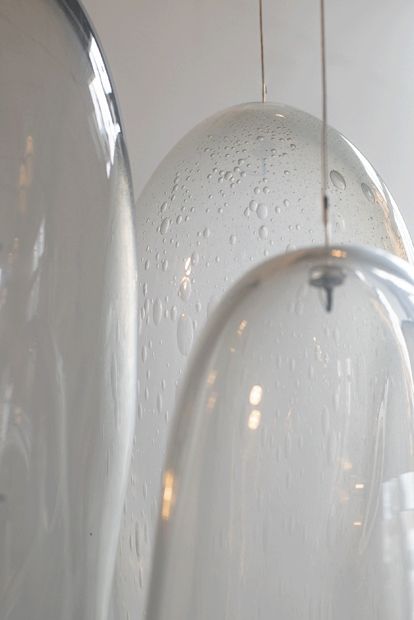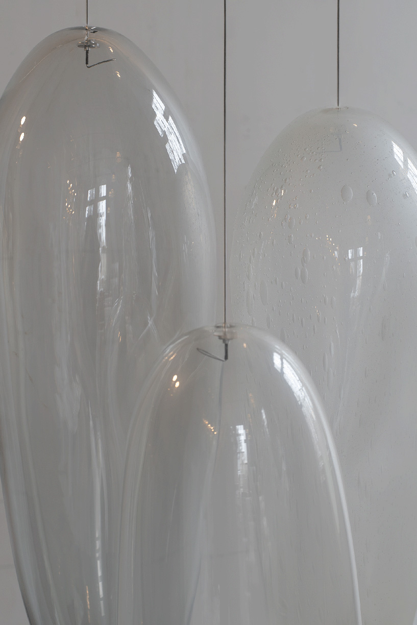 After her recent residency at the Museum of Glass, multi-media artist Ann Gardner has returned to her roots. Inspired by the large amount of time she spends in the water, she sought to create bubble like forms. They are intentionally imperfect, as is nature, and created with breath, another element essential to sustaining life. These hanging forms remind her of the purity and simplicity she finds in glass, and the effortlessness way the medium helps her to express herself.
