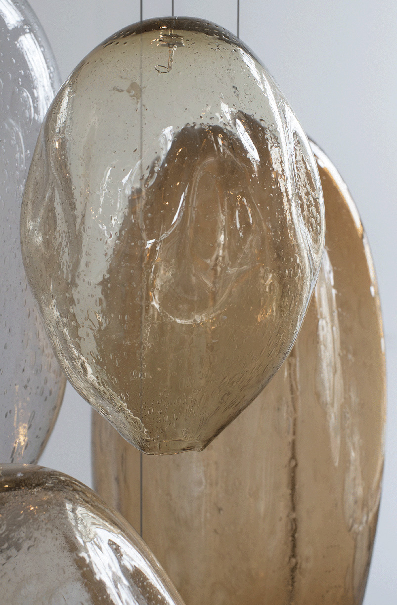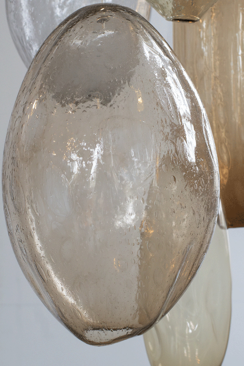 After her recent residency at the Museum of Glass, multi-media artist Ann Gardner has returned to her roots. Inspired by the large amount of time she spends in the water, she sought to create bubble like forms. They are intentionally imperfect, as is nature, and created with breath, another element essential to sustaining life. These hanging forms remind her of the purity and simplicity she finds in glass, and the effortlessness way the medium helps her to express herself.
