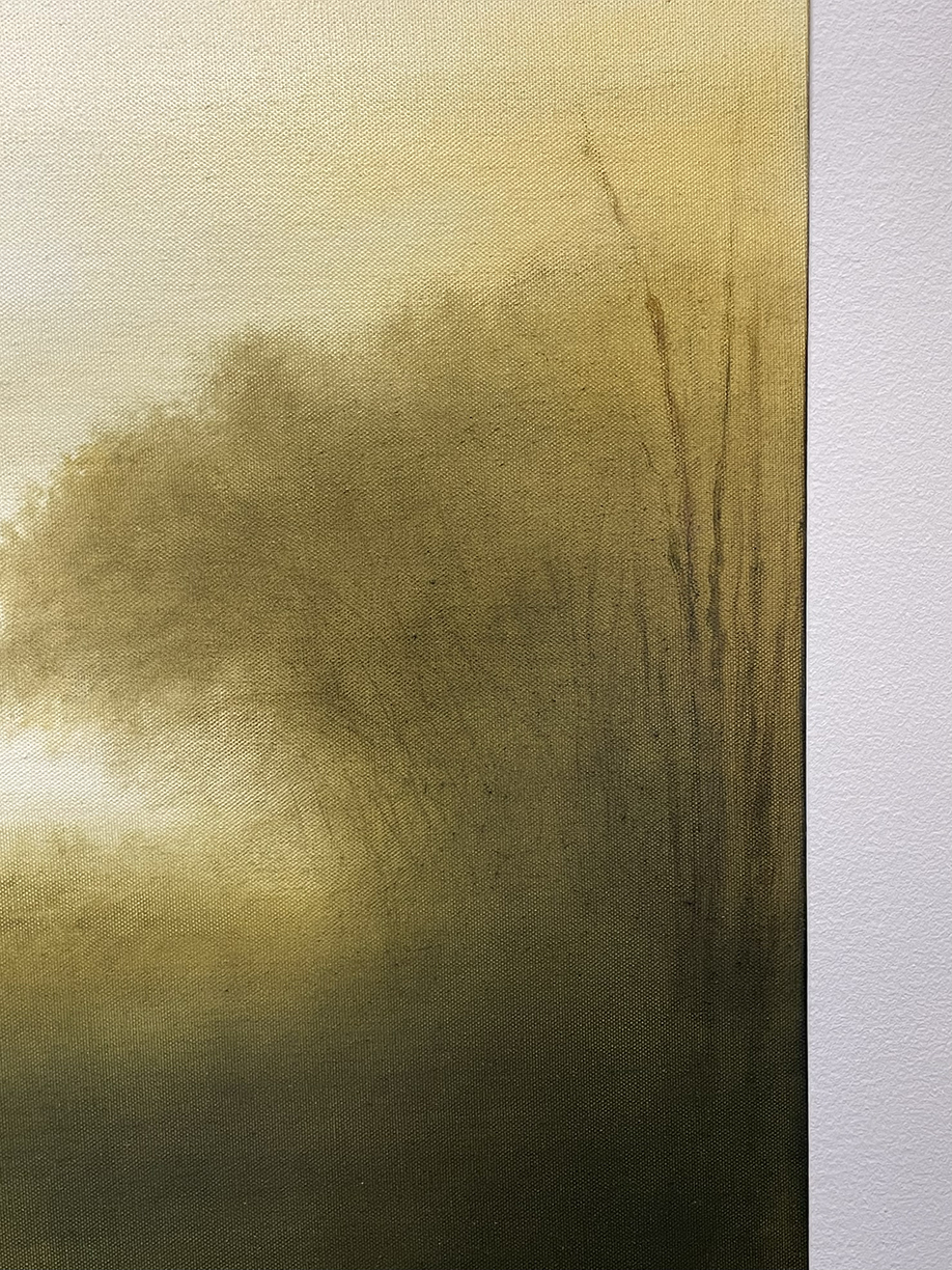 Hiro Yokose paints images of nature composed in subtle, sensuous palettes. Playing with the viewer’s perceptions, his work creates a visual experience of recognition and mystery. Yokose’s technique involves layering oil paint and polished varnish on the canvas surface, creating soft, dream-shrouded vistas. There is the sense of the infinite in his luminous works. Yokose often paints a low horizon line in his compositions, illuminating the rest of the canvas with Turneresque skies and quiet, misty landscapes. In this way, his work hovers between a Zen-like minimalist abstraction and a traditional landscape.