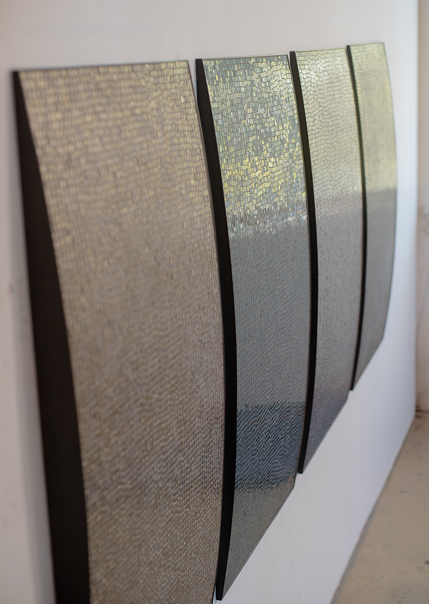 Through her mosaic works, Gardner is able to express the complexity of light and the way in which it interacts with glass and the environment. Her panels flicker and seem to move with you. Each sculpture will transform itself depending on the location and time of day. Light becomes an integral and essential aspect of the works.