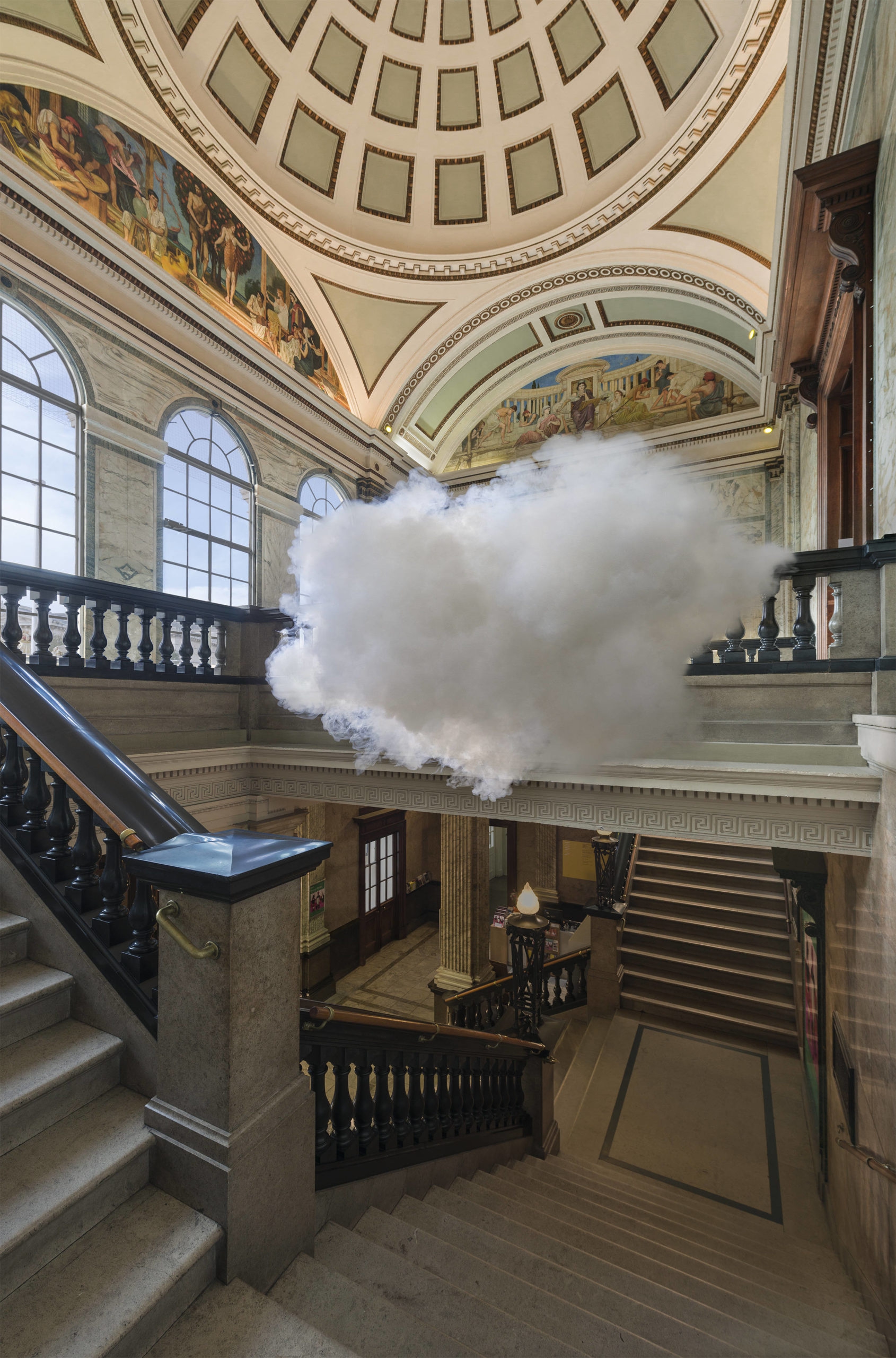 Berndnaut Smilde creates surreal photographs by fabricating temporary cloud formations in architectural and external spaces. Each formation is unique and develops based on the conditions added to that specific environment. The immediate reaction of disbelieve is quickly replaced with sense of wonder for these anthropomorphized cloud forms. His images are intentionally devoid of objects, removing any sense of time, leaving only the photograph to document the event. By manipulating nature and placing a recognizable imagery in an unnatural setting, he asks us to question our preconceived notions of the world around us and our relationship with it.