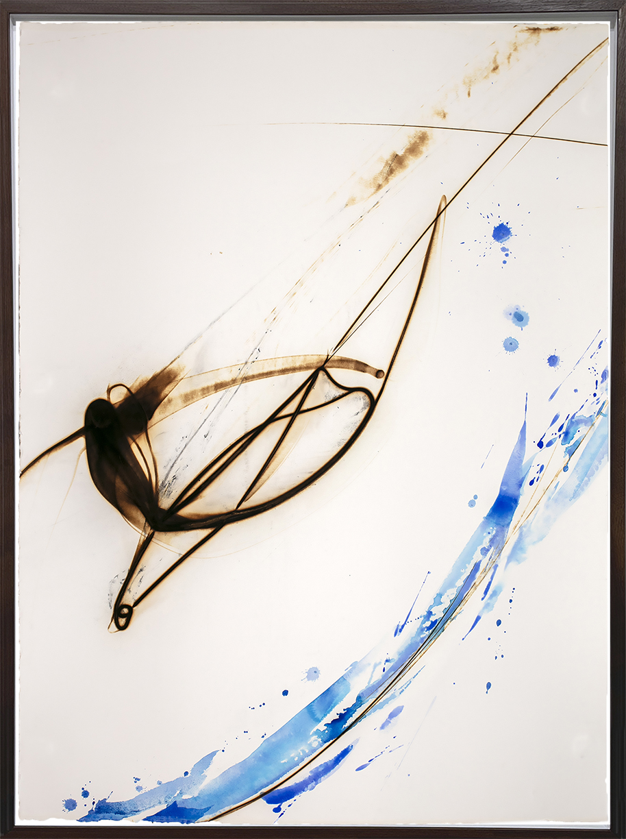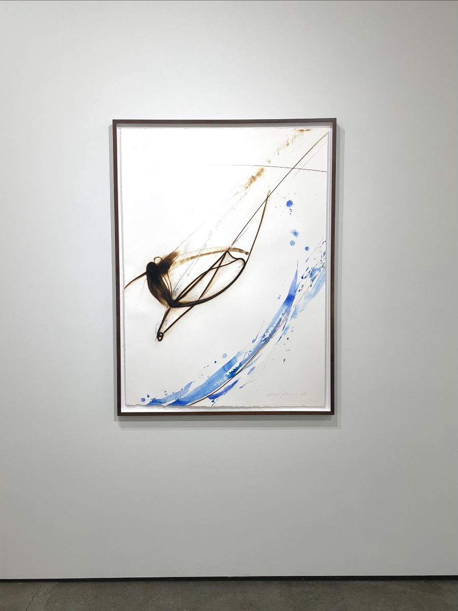 While at working Pilchuck as a glass sculptural artist, Ichikawa dropped molten glass onto a concrete floor, leaving behind unexpectedly beautiful burn marks. This accident revealed to her a new way of composing with molten glass as brush, and fire as ink. This started an exploration spanning 20 years, drawing with flame, where heat leaves behind charred, gestural tracings, capturing movement and form. Each work eternalizes fleeting moments, inviting viewers to witness fire’s transformation of matter into mark.