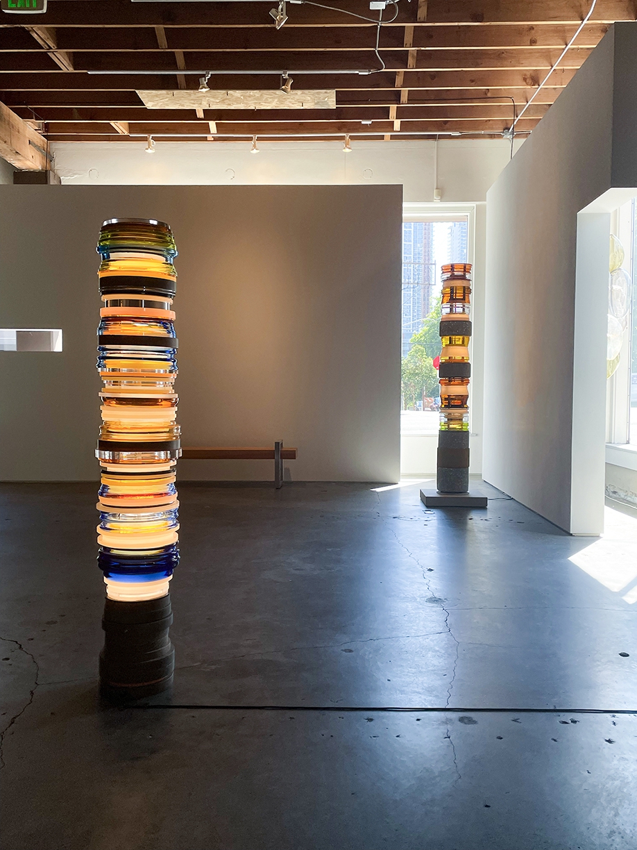 Winston Wächter Fine Art is excited to announce our second solo exhibition with Los Angeles sculptor Matt Gagnon. Formally trained as an architect, Gagnon is sensitively aware of how we use space, and the impact that can have on our emotional response to our surroundings. Through his light stack sculptures, Gagnon pays careful attention to each element, texture, and color, and what those might evoke. They are subtle symbols of our pasts, our travels, our memories.