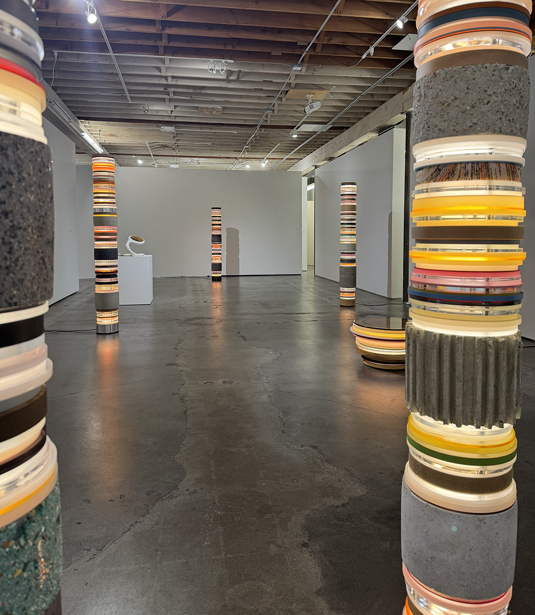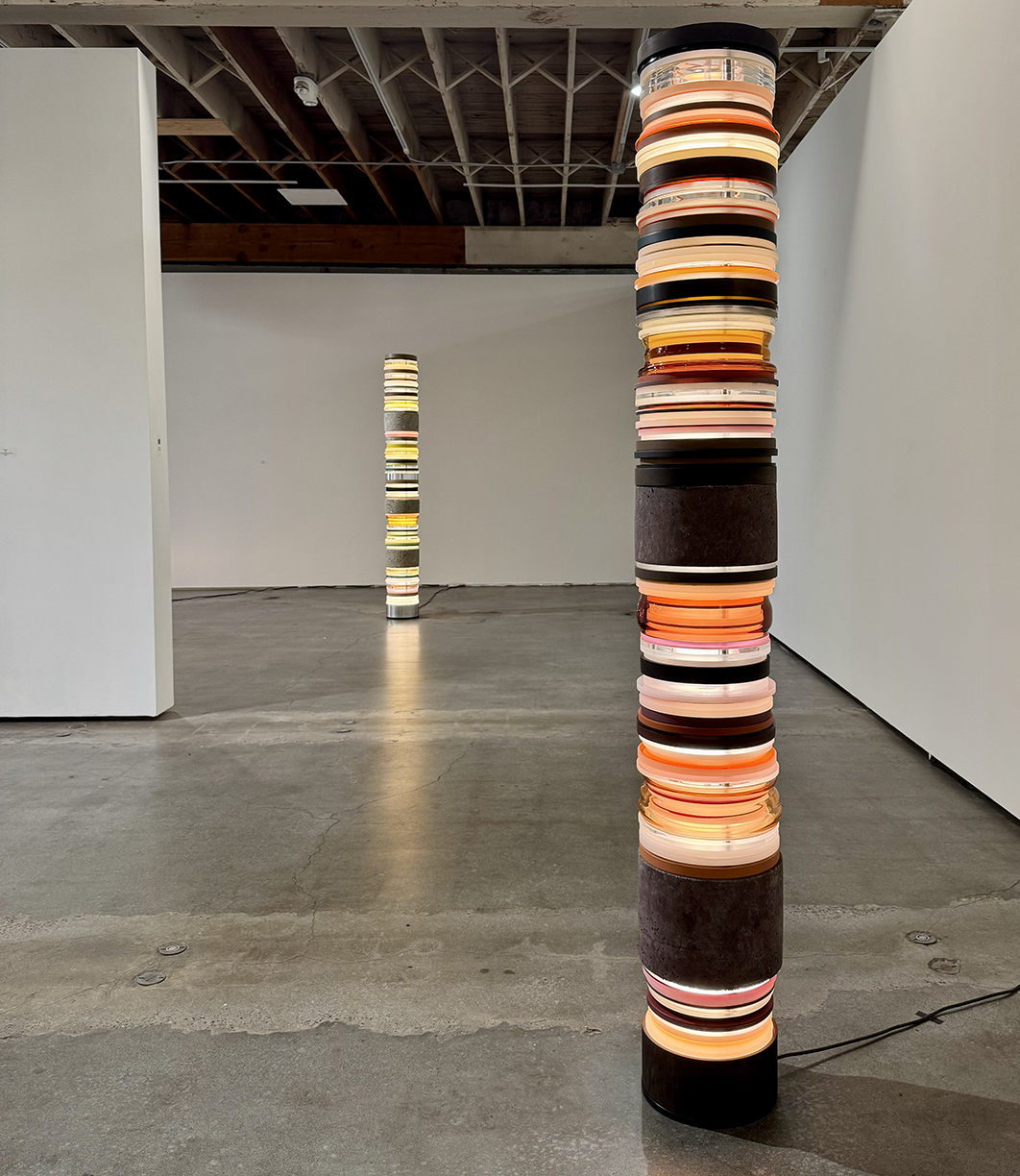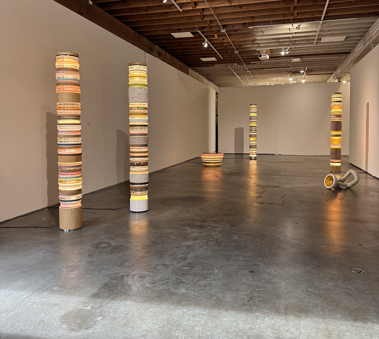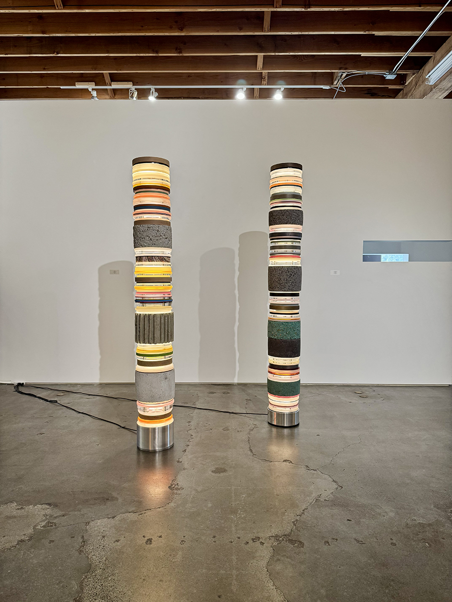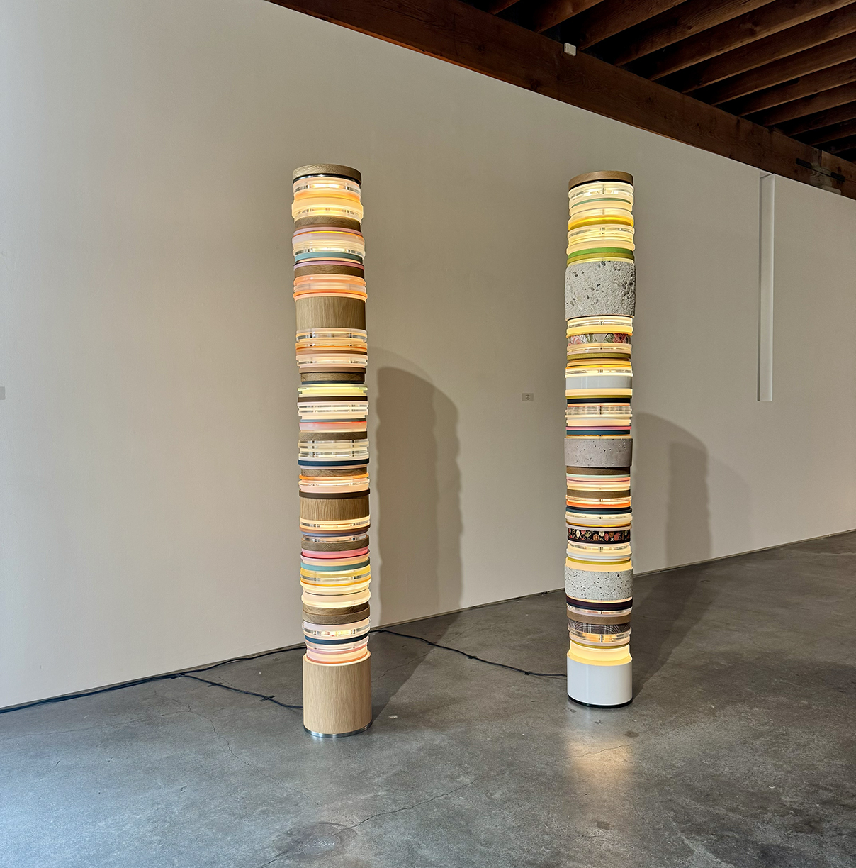Matt Gagnon’s sculptural practice is rooted in a deep investigation of material, process, and perception. In Increments of Time, he extends this exploration to consider how light and form embody the passage of time itself. Each work is built through a process of layering, wood, metal, concrete, and other elemental materials, assembled into stacked, totemic structures that both contain and reveal a luminous core.