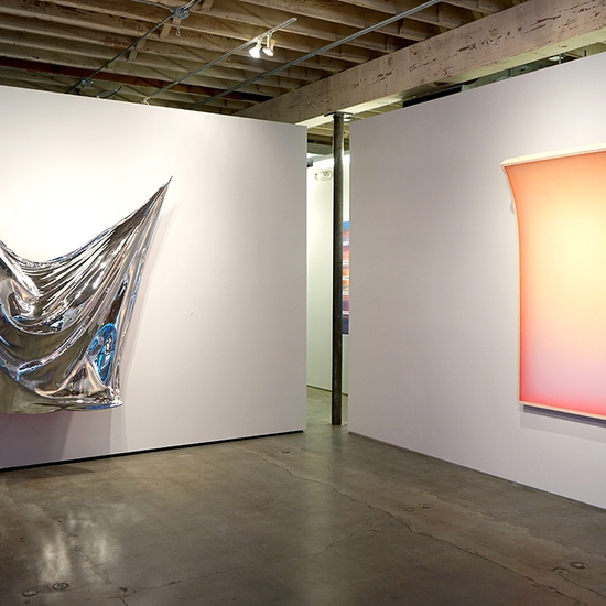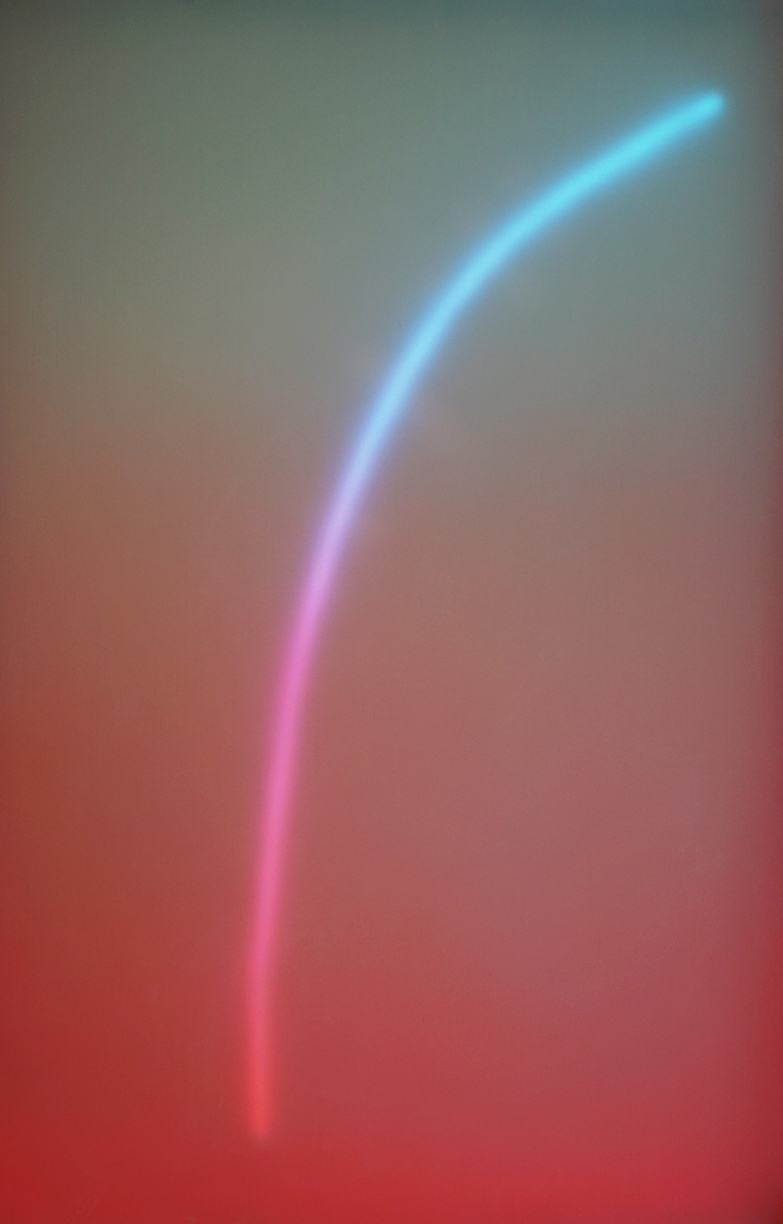 Alongside his paintings Gronquist shares his series “A Visual History of the Invisible.” In these works he again uses a natural element, air, to express his curiosity. This series attempts to capture the shapes and constant presence of the wind. His large-scale outdoor fabric installations are filmed digitally, creating a mesmerizing presentation of the rhythm of the wind. Smaller scale fabrics are caught mid flow and preserved in resin and silver nitrate. The forms play with both light and air. They are Gronquist’s limitlessness encapsulated. The wonder of the natural world is clear throughout the Searcher.