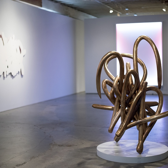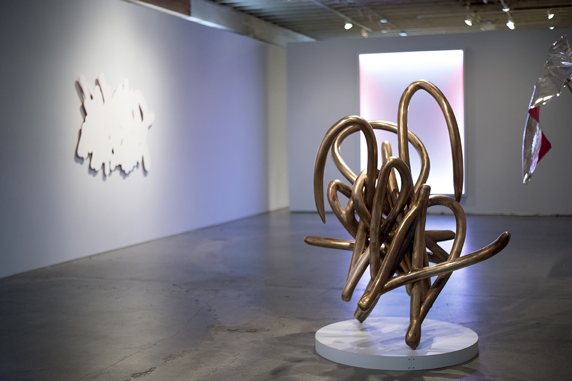 Peter Gronquist is a multimedia, multidisciplinary artist. If you ask one to “describe the work,” the answer is never simple. Gronquist uses ceramics, painting, VR, 3d printing and video to express a common thread of exploration. For Gronquist, it is the endless possibilities in the creation of art that interests him most. He has no rules and does not tie himself to any outside expectations. In his exhibition Searcher, Gronquist explores light as an added material to his paintings. Using Plexiglas as part of the work rather than protection for it, he plays with the way light is reflected and projected off the matte surface of the paintings. His paintings seem to glow from within. Further playing with the sense of what is and what is not, Gronquist adds led lighting to some but not to others. With each painting we are compelled to stop and absorb.