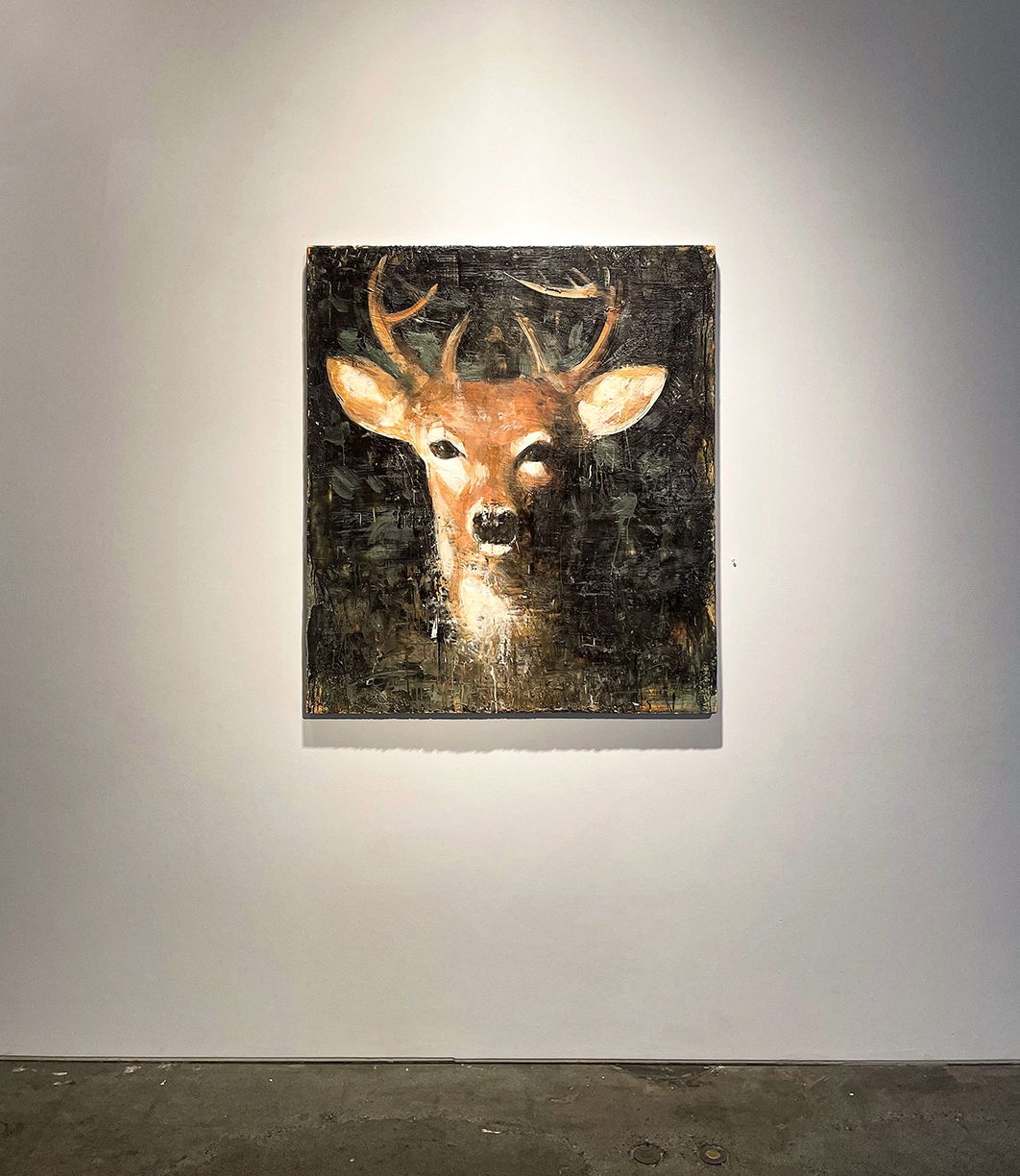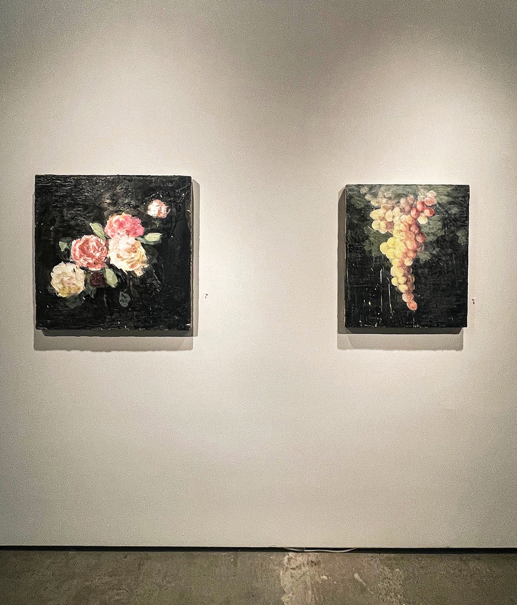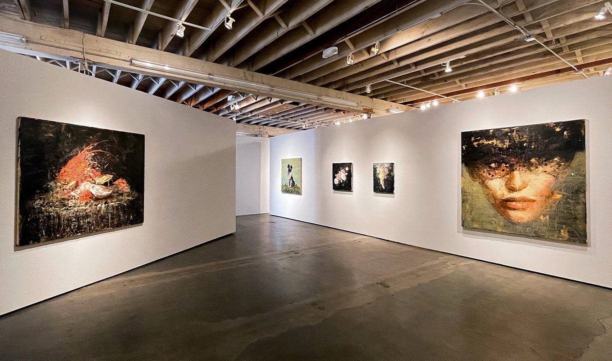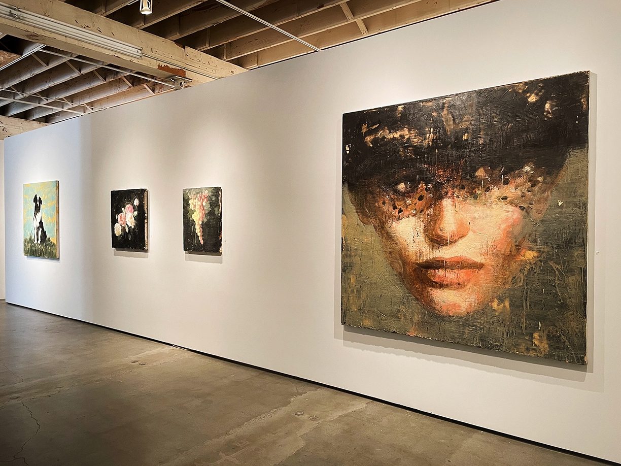 Much of mythology is meant to warn mortals against their folly, however then as now, often the innocent are those weighted with what befalls them. Leda and the Swan is one of the best known tales in Greek and Roman mythology. The god Jupiter/Zeus transforms himself into a swan and rapes or seduces Leda. In much of art history, this is depicted more as a seduction, softening the uncomfortable subject matter. The blame is placed on Leda and her ability to be fooled, rather than depicting her as the victim that she was. In Tony Scherman’s exhibition, The Rape of Leda, Scherman confronts and names the act, forcing us to consider it. We do not see the interaction between the two, rather the approaching god and the cast of silent onlookers (Venus, Persephone, Diana as a stag, Cerberus and others). As in life, bystanders bear witness and cannot find their voices to protest, or at times do not care to. Scherman’s flowers act as symbols of the empathy and protection Leda deserved and was unable to find.